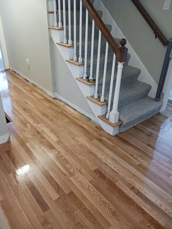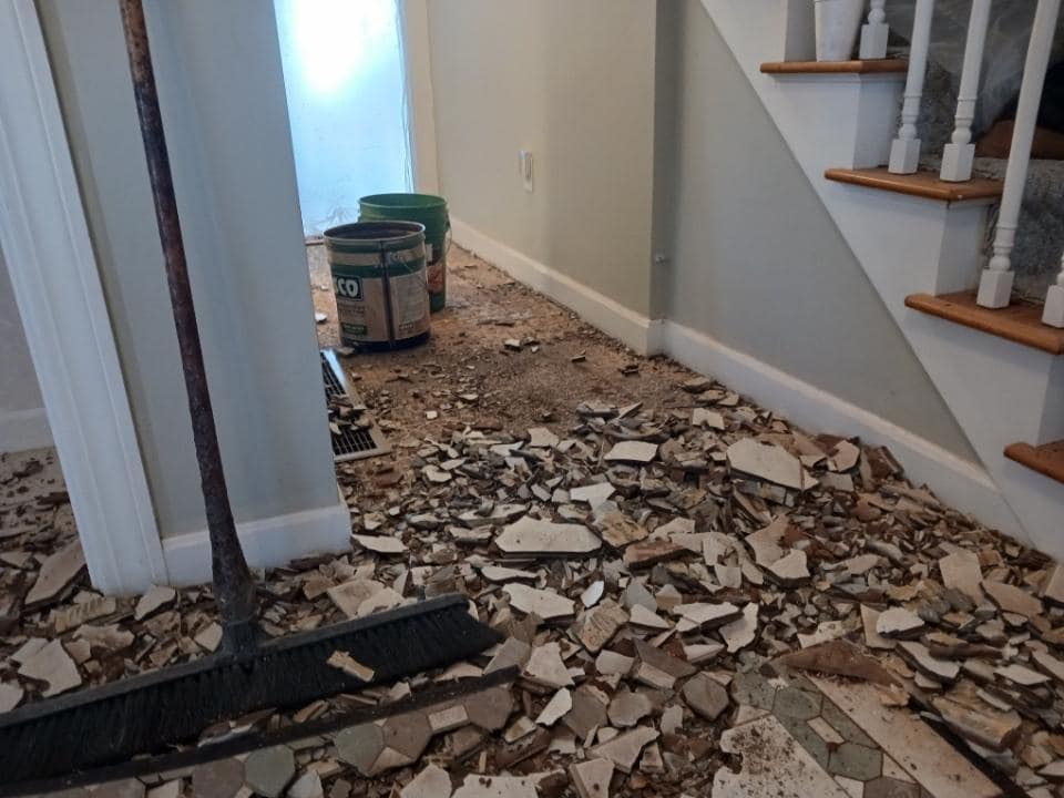 Below are some photos from January of this year of some tile floors we ripped out and replaced with New White Oak Hardwood!